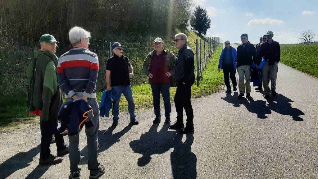 Die Turnveteranen liess es sich hier gut gehen und die Gespräche rundherum zeigten, dass alle bestens gelaunt waren. Es dauerte allerdings nicht so lange und Paul mahnte zum Weitergehen. In getrennten Formationen liefen das A und das B über Betelhausen bis zum Restaurant Sonne in Islikon. Das C wurde per Auto dorthin gebracht.