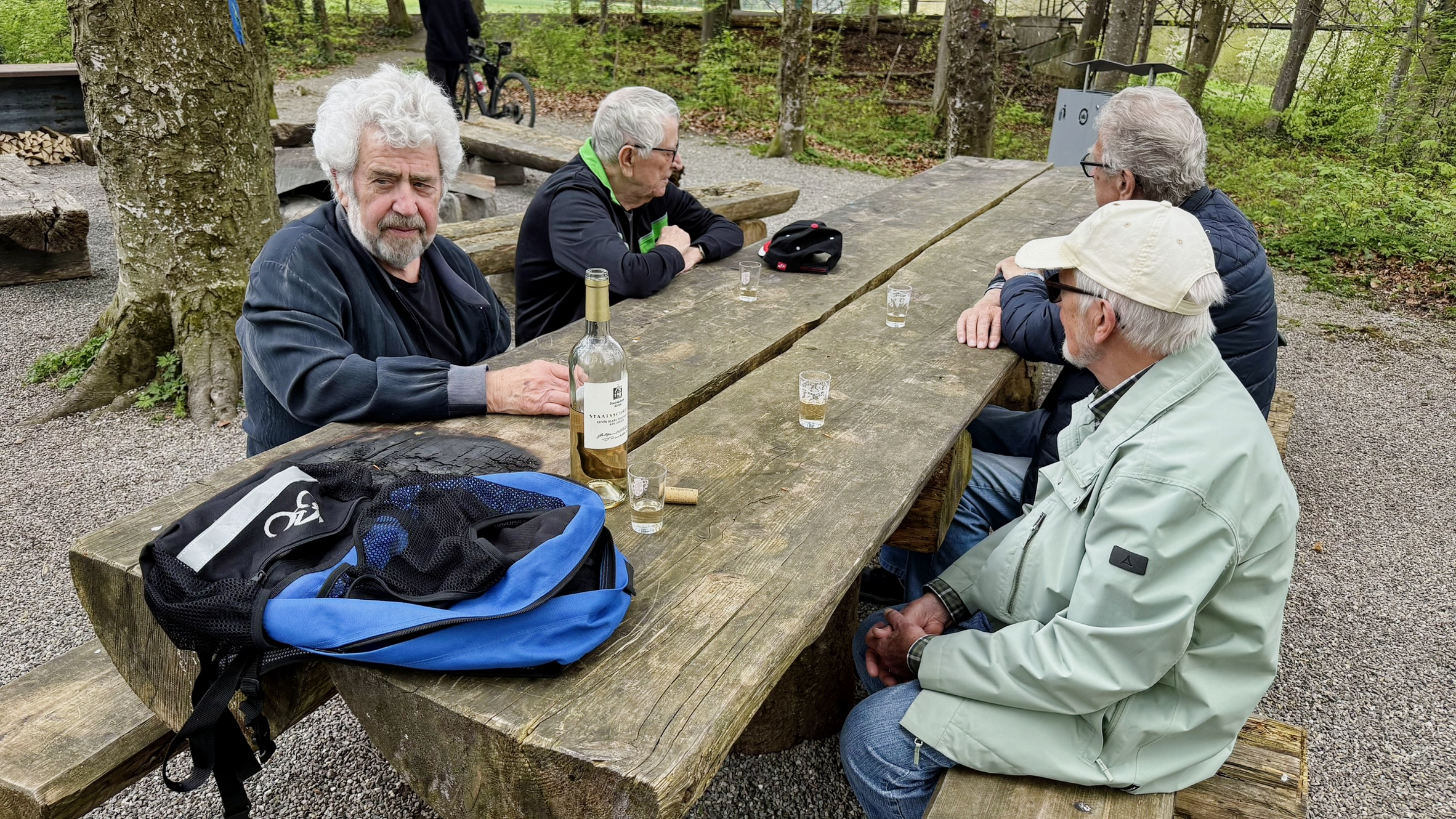 Die fünfköpfige C-Gruppe mit Röbi fuhr mit Bahn und Postauto bis zur Haltestelle «Stadler» Ab hier gings hinunter zum Gangelisteg. Bei einem schönen Brätelplatz genossen wir den schon fast obligatorischen Apero bevor es weiter ging zum Restaurant des Altersheim Bussnang. Hier waren die beiden Gruppen schon am Möhl trinken und Nussgipfel verspeisen. Um 16.15 Uhr gings mit dem Bus zum Bahnhof Weinfelden und mit der Bahn zurück nach Frauenfeld. 33 Wanderer danken unseren drei Wanderleitern Karl / Paul und Röbi für die Organisation. Bilder: Peter/Heinz/Köbi