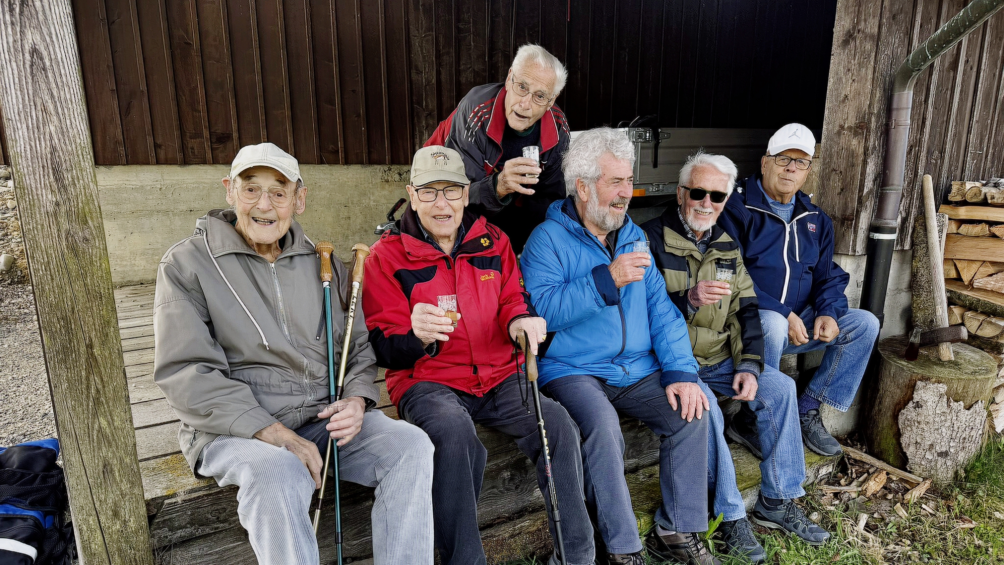 Die heute 7 -köpfige C-Gruppe mit Röbi an der Spitze startete um 14.15 Uhr mit dem Postauto und fuhr nach Weiningen Dorfplatz. Wir marschierten aber nicht direkt zur Beiz, sondern machten einen kleinen Umweg bis zum Weier unterhalb des Dorfes. Unterwegs genossen wir in einem Schopf den fast obligatorischen Apero. Zu erwähnen ist das heute unser ältestes Mitglied Walter Gubler mit gut 100 Lebensjahren die Strecke mit uns abgelaufen ist. Ein grosses BRAVO.