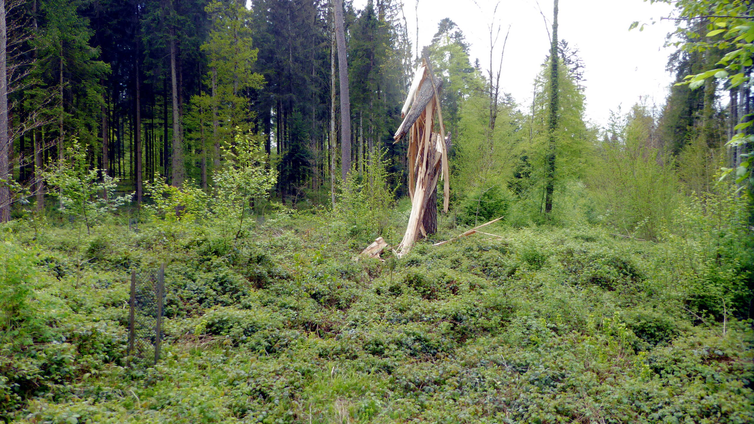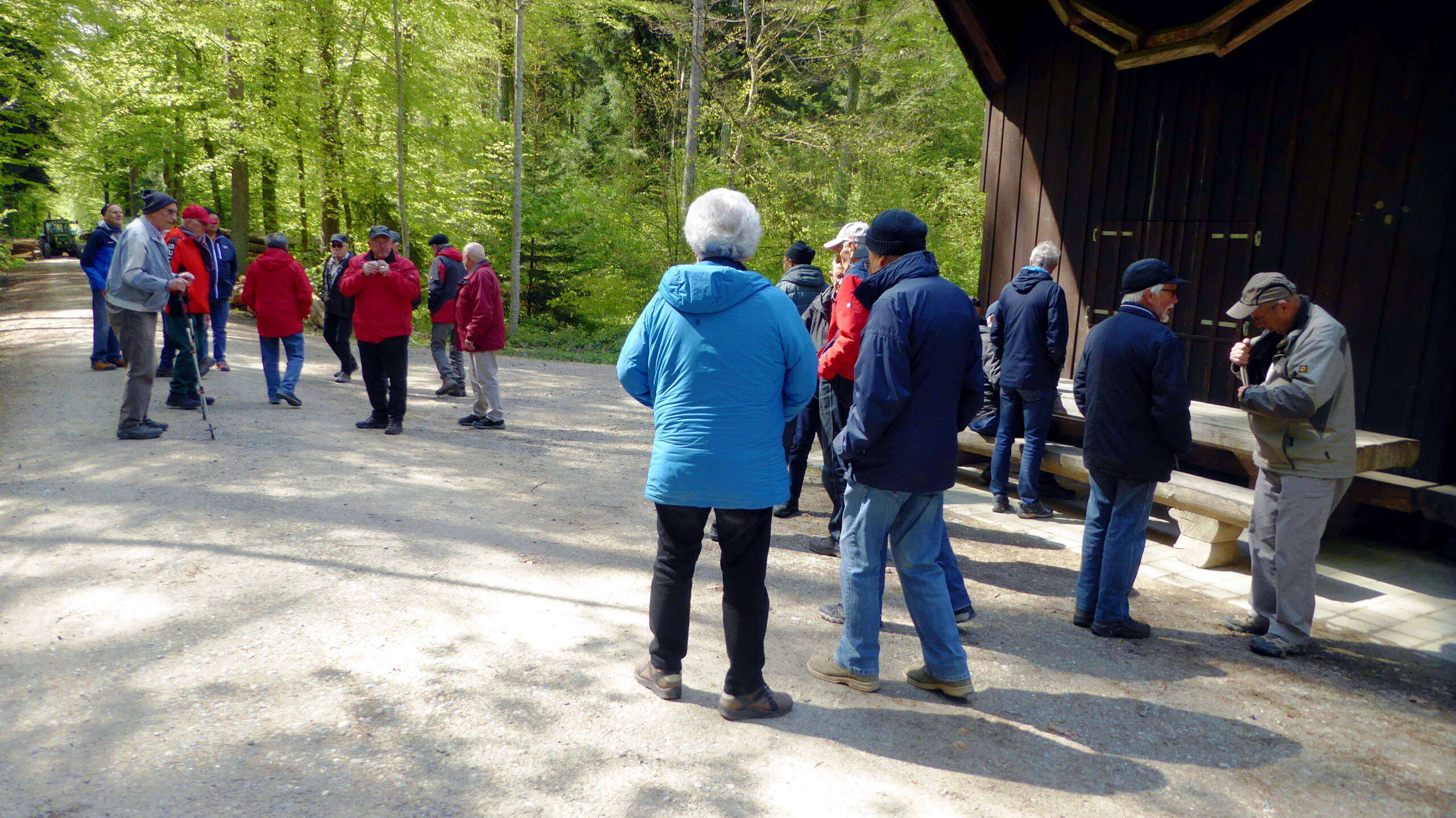 Nach kurzer Begrüssung von Hans mit einem Hinweis für den Feuerwehr Marsch und dem Goldgräber Event starteten wir gemeinsam zu unserer heutigen Wanderung. Nach dem überqueren der Haupstrasse marschierten wir meistens dem Dorfbach entlang leicht ansteigend bis zum Zwischenziel, der Hütte von der Brüdergemeinde Pfyn. Unterwegs sahen wir noch einen vom Sturm gespalteten Baum. Gewaltig was starker Wind anrichten kann. Hier machten wir nicht nur einen Marschhalt sondern wir wurden von den drei Pfynern mit einem feinen Apero überrascht.